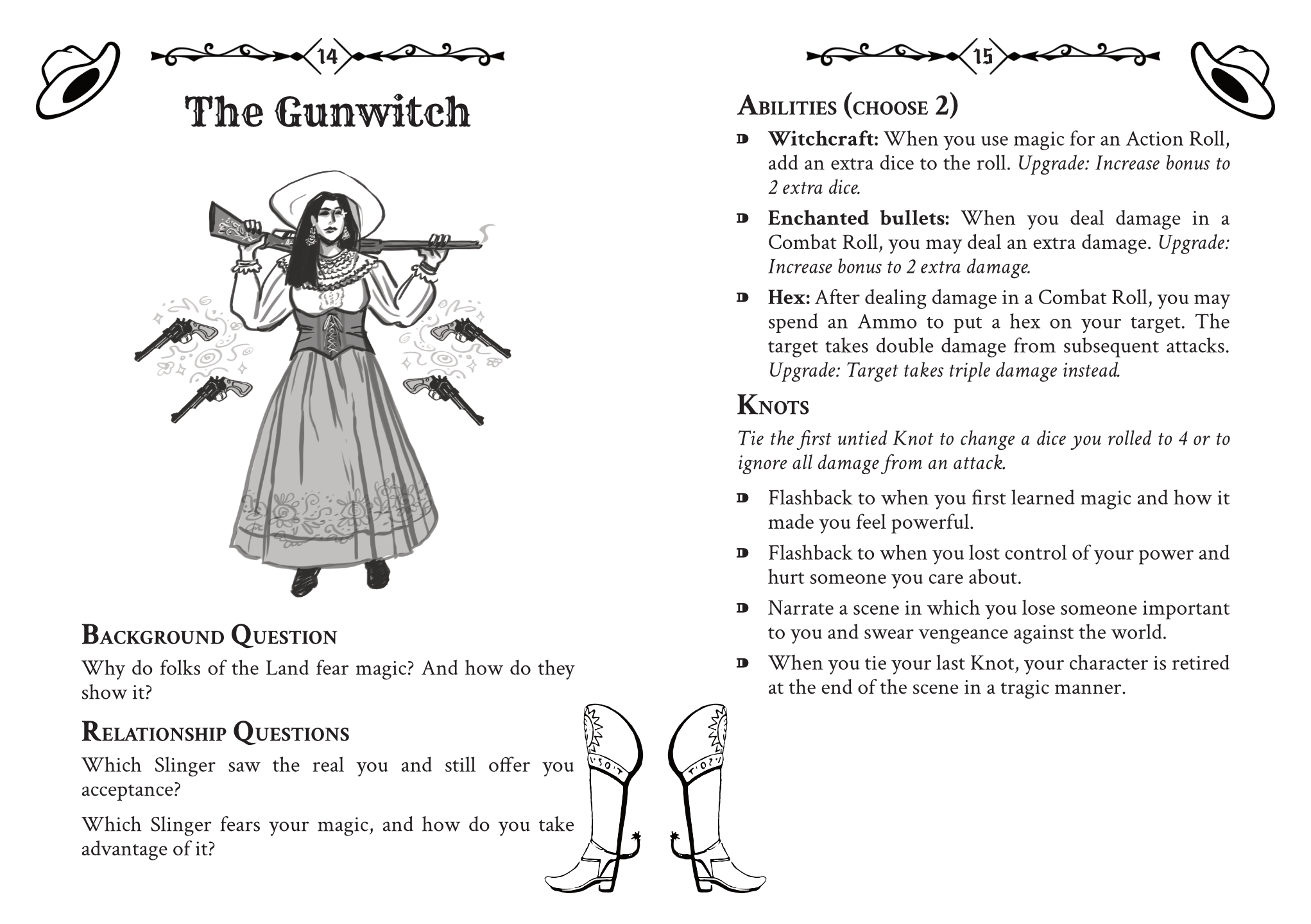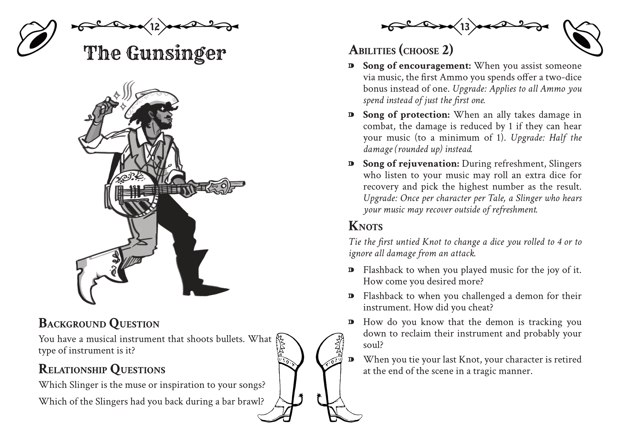 Each of you is a Slinger, a wandering vagabond with a trusty six-shooter who is ready to defend what you believe is right and offer help to those in need.